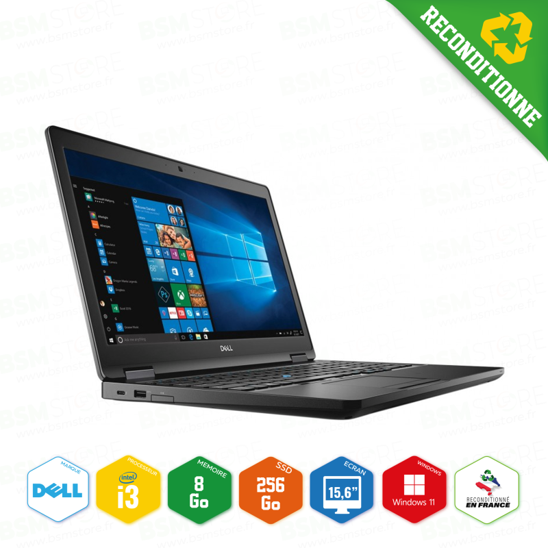 Découvrez l'ordinateur portable reconditionné Dell Latitude 5590, équipé d'un processeur Intel Core i3 de 8ème génération, 8 Go de RAM, un SSD de 256 Go et Windows 11 Professionnel préinstallé. Cet ordinateur offre une solution informatique mobile complète pour répondre à vos besoins professionnels et personnels.