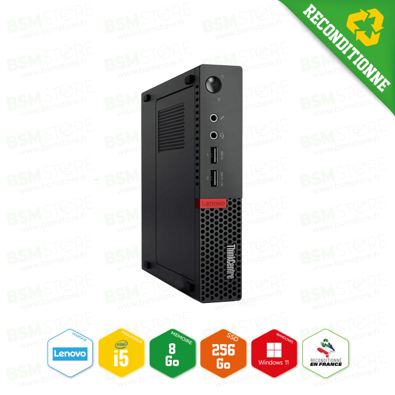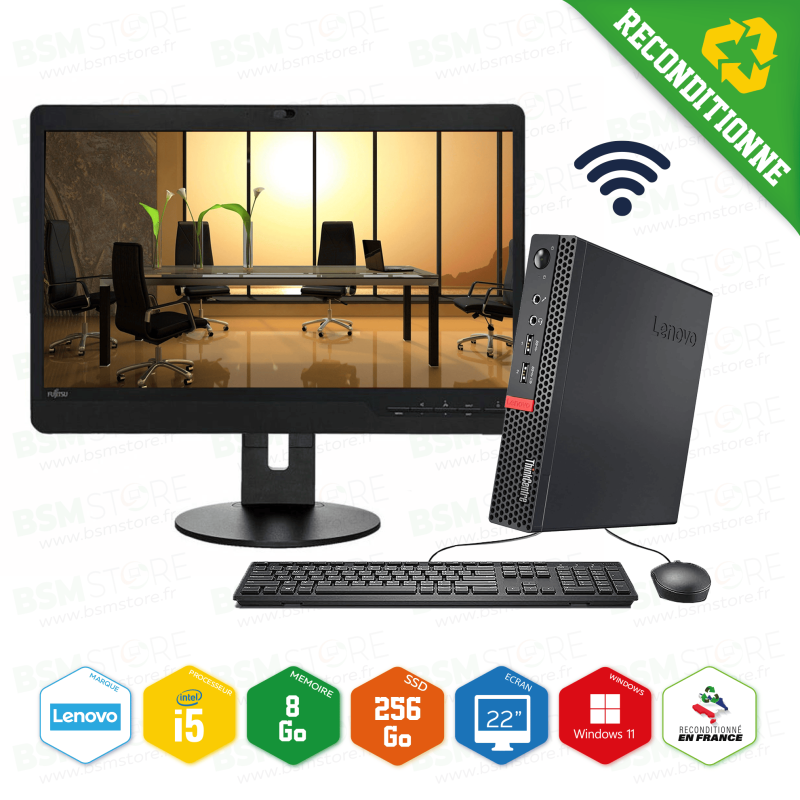 Lenovo - PC Complet M710Q Tiny i5-6ème 3,20 GHz 8Go 256 SSD Win11Pro avec + écran 22" +clavier et souris + Wi-Fi - Reconditionné