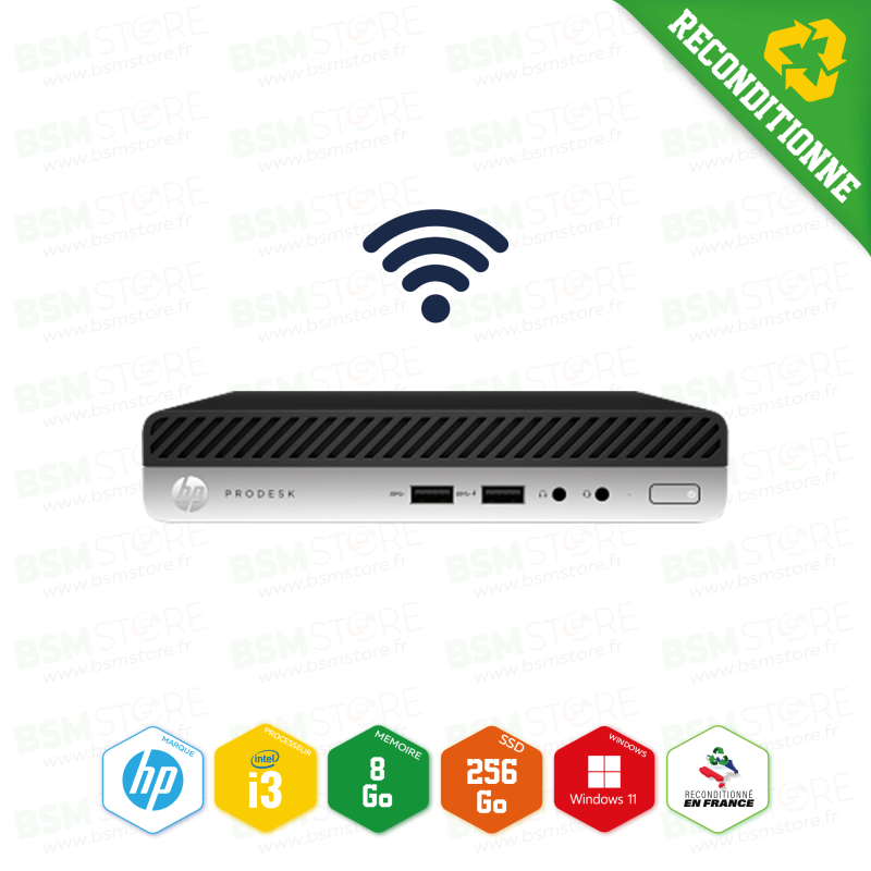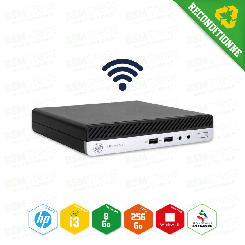 HP - Unité centrale Prodesk 400 G5 Mini i3-9ème 3,10 GHz 8Go 256SSD Win11Pro avec Wifi - Reconditionné