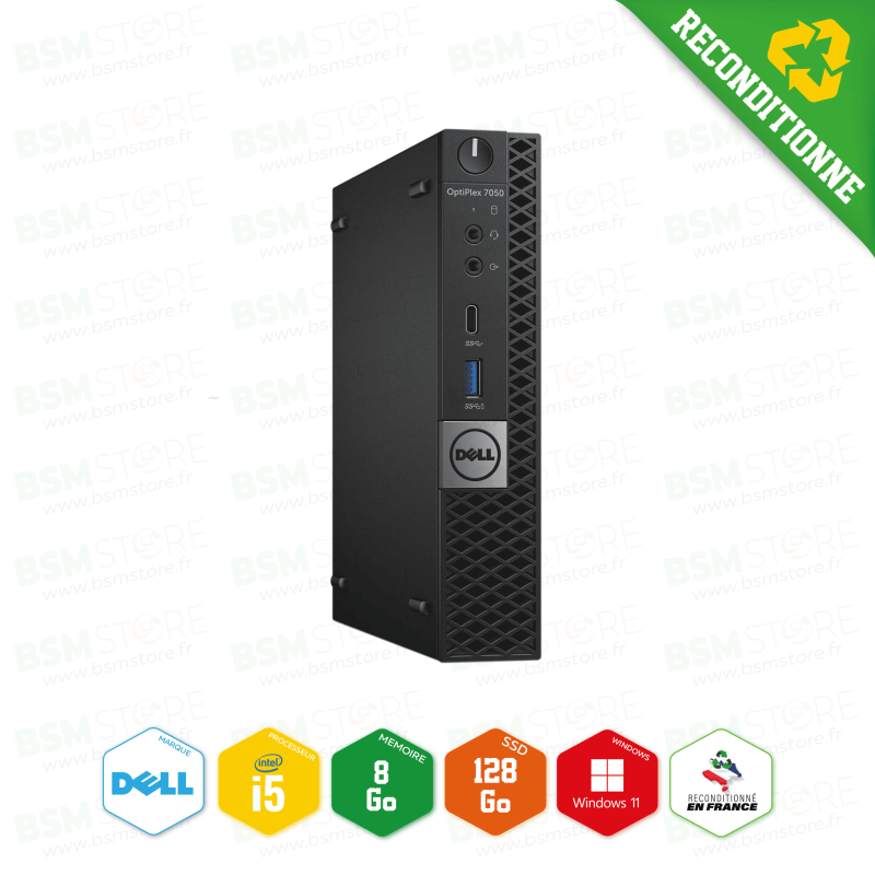 1Dell OptiPlex 3040 reconditionné avec processeur Intel Core i5 6e génération, 8 Go de RAM, SSD 128 Go, Windows 11 Pro et Wi-Fi intégré : un PC de bureau fiable et performant pour le travail et la bureautique.