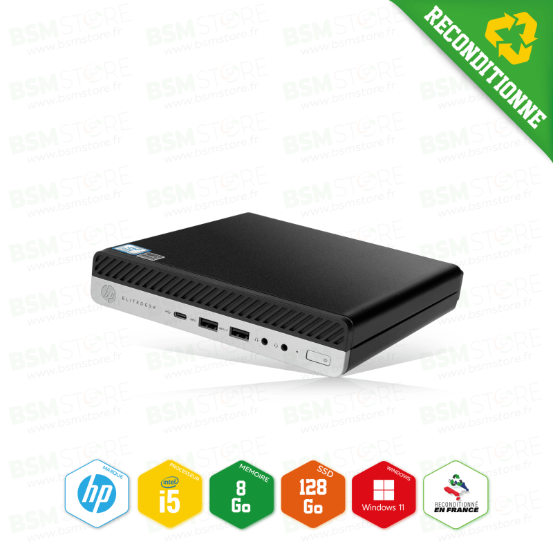 Découvre notre offre : Une unité centrale HP Elitedesk reconditionné 800 G2 de i5-6ème gen, 2,50GHz, 8Go, SSD de 256, Windows 11 professionnel intégré avec wifi.